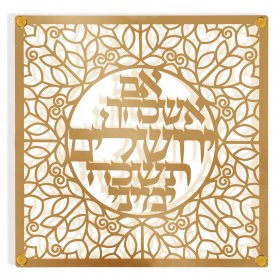 Square Gold Wall Plaque, Image of Temple Framed with Verses on Jerusalem - Dorit Judaica$54.84 -