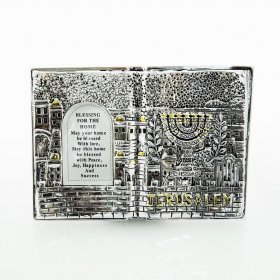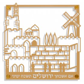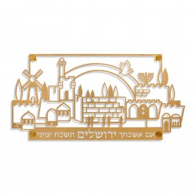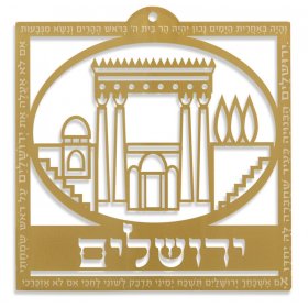 Small Jerusalem Wall Plaque, Cut Out Images and Psalm Words, Gold - Dorit Judaica$88.42 -