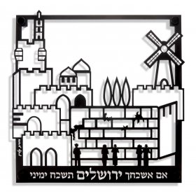 Wall Plaque Cut Out Jerusalem Images with Psalm Words, Black - Dorit Judaica$144.38 -