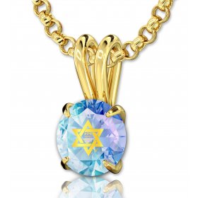 Colorful Swarovski Star of David Shema Necklace in Gold Frame - Nano$245.70 -