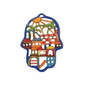 Hand Painted Colorful Laser Cut Wall Hamsa, Jerusalem - Yair EmanuelSize: 15x11 cm / 6 x 4.5"$25.74 -
