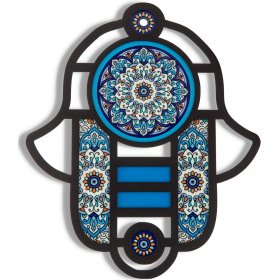 Modern Hamsa in Stained Glass Art Style, Floral Design in Blue - Dorit Judaica$51.48 -
