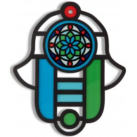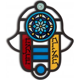 Modern Wall Hamsa in Stained Glass Art Style, Blessings in Hebrew - Dorit Judaica$51.48 -