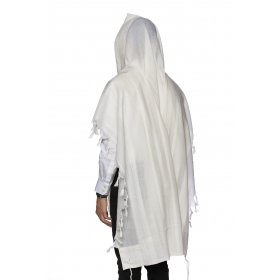 A Traditional Tallit, (Prayer Shawl), usually refers to the size, fabric, and design of the prayer shawl worn by a praying Jew throughout the centuries. Its body length is wrapped around the shoulders. The fabric is preferably wool, although cotton, silk, and other mixtures are acceptable. The traditional design, derived from Halachic sources, is a series of black stripes of various widths along the tallit.