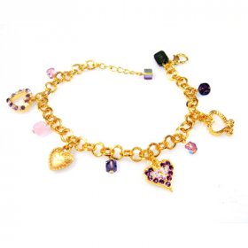Purple and Pink Heart Charm Bracelet - Edita$54.59