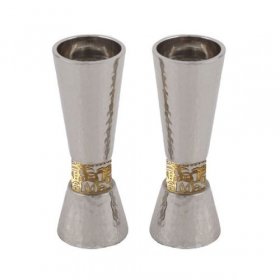Cone Shaped Candlesticks with Gold Jerusalem Band, Hammered Silver - Yair Emanuel$81.69 -