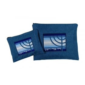 Tallit and Tefillin Bag Embroidered Menorah and Psalm Words, Dark Blue - Ronit Gur$123.12 -