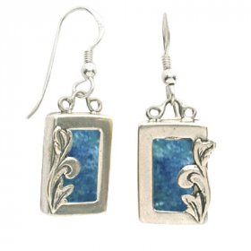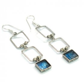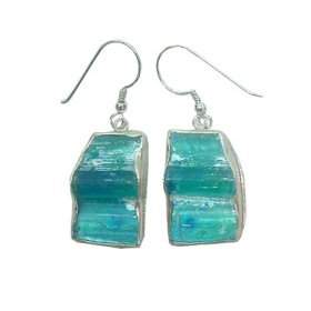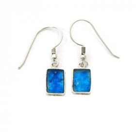 Small Sterling Silver Drop Earrings with Roman Glass in a Rectangle - Michal Kirat$39.17 -