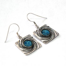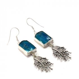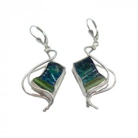 Handmade Sterling Silver Drop Earring with Roman Glass as Sea Waves - Michal Kirat$117.52 -