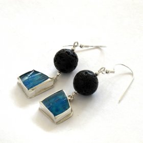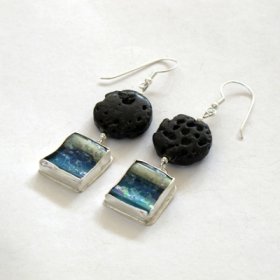 Roman Glass Dangle Earrings with Sterling Silver and Black Lava Beads – Michal Kirat$161.17 -