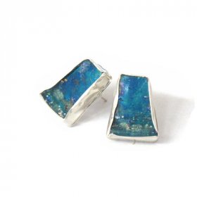 Handmade Sterling Silver Stud Earrings, Rectangle with Roman Glass - Michal Kirat$117.52 -