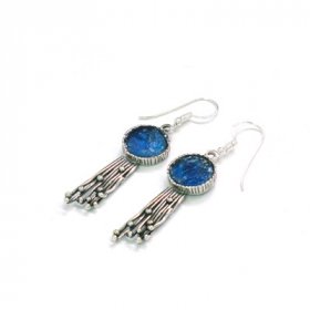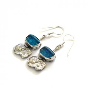 Sterling Silver Dangle Earrings with Roman Glass and Dumortierite Beads - Michal Kirat$47.01 -