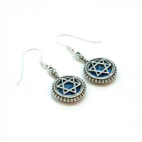 Sterling Silver Drop Earrings, Star of David with Roman Glass Center - Michal Kirat$72.75 -