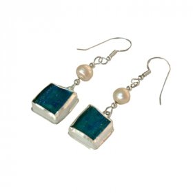 Michal Kirat Roman Glass Dangle Earrings with Sterling Silver Decorative Squares$138.78 -
