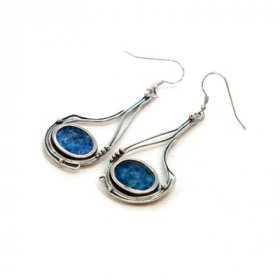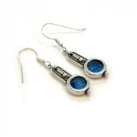 Silver Sterling Dangle Earrings with Roman Glass, Antique Style - Michal Kirat$54.84 -