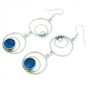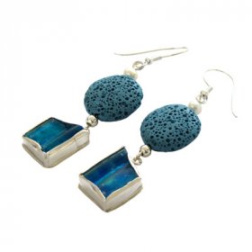 Sterling Silver Dangle Earrings with Roman Glass and Blue Lava Beads - Michal Kirat$161.17 -