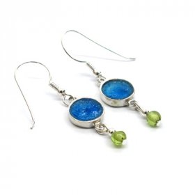 Sterling Silver Dangle Earrings with Roman Glass and Peridot Beads - Michal Kirat$47.01 -