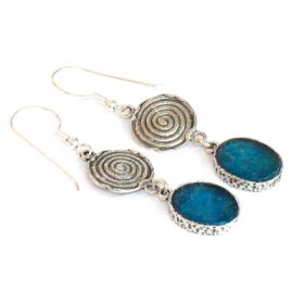 Sterling Silver Dangle Roman Glass Earrings with Decorative Swirl Disc - Michal Kirat$123.11 -