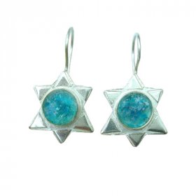Sterling Silver Drop Earrings with Roman Glass and a Star of David - Michal Kirat$55.96 -