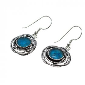 Sterling Silver Earrings with Roman Glass in Round Birds Nest Frame - Michal Kirat$139.90 -