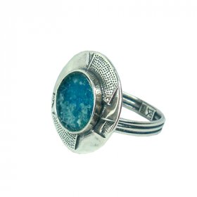 Sterling Silver Ring with Roman Glass Center and Hand Engraved Frame - Michal Kirat$104.10 -