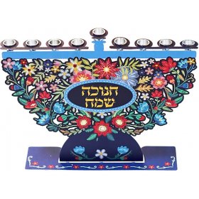 Laser Cut Chanukah Menorah with Colorful Embroidery Style Flowers - Dorit Judaica$76.93New arrival! -