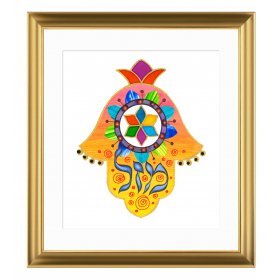 Colorful Hamsa with Mazal in Hebrew Framed Print, Dvora Black$85.36New arrival! -