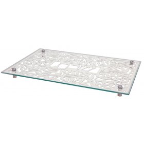 Tempered Glass Challah/Candlestick Tray, Pomegranate Design - Dorit Judaica$114.33New arrival! -