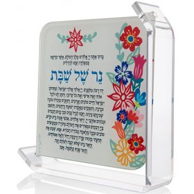 Shabbat Candleholders with Prayer and Blessing, Colorful Flowers - Dorit Judaica$57.11 -