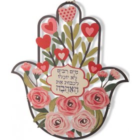 Wall Hamsa with Lace Flower Design & Hebrew Blessing Words – Dorit JudaicaSize: 7" x 9.6" Choice of Gold or Silver$39.12 -
