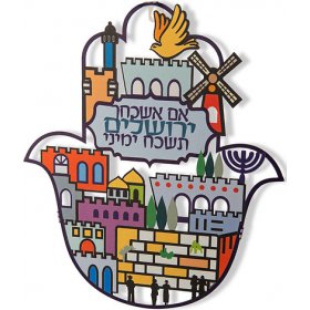 Wall Hamsa with Hebrew If I Forget Thee Jerusalem with Old City Images - Dorit JudaicaSize: 7" x 9.6"$39.12 -