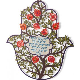 The Hamsas created by Dorit Klein are unique. She gives them depth and meaningful significance through connecting to a traditional Jewish source. Using contemporary materials, she laser cuts stainless steel in the Hamsa shape and in the center she adds appropriate verses or prayers in a pretty colorful background. Canaan Online presents some of her most outstanding Hamsas. You can choose a Hamsa that incorporates an Eishet Chayil prayer, the Priestly blessing, the home blessings, blessing for the soldiers or prayer for the New Month. All of them are stylish and meaningful and will enhance the room where it is hung.